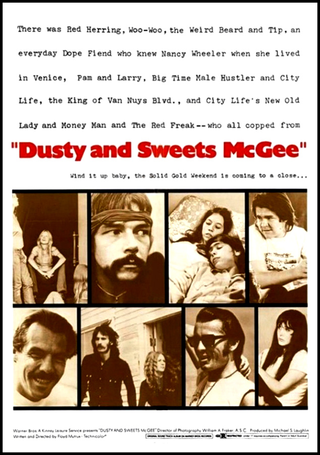 Dusty and Sweets McGee (USA, 1971) 92 min color DIR-SCR: Floyd Mutrux. PROD: Michael Laughlin. DOP: William A. Fraker. CAST: Clifton Tip Fredell, Kit Ryder, Billy Gray, Bob Graham, Nancy Wheeler, Russ Knight (Warner Brothers)