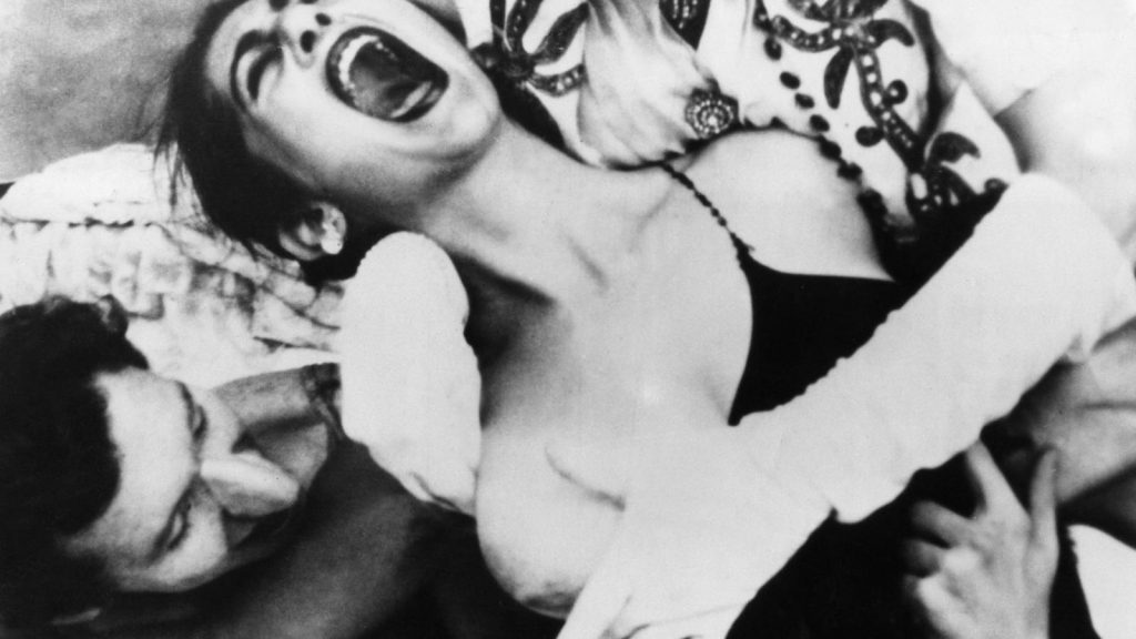 The washed-out visuals (due to being shot on outdated military film stock) accentuate the cloud of ambiguity, and (intentionally or not) have a gauzy dreaminess which recalls the very papier-mâché artifice of those 1940s exotic costume vehicles, specifically those of Smith’s muse, actress Maria Montez. The film’s otherworldliness from the non-acting, drag costumes (when worn at all) and grubby compositions is upheld by rubbery, post-sync sound, and scratchy, tinny music from 78 RPM records. Flaming Creatures has an operatic flow: a middle diminuendo bookended by crescendoes of desire carried out to sometimes dangerous degrees, as pain replaces (or at least copulates with) pleasure.