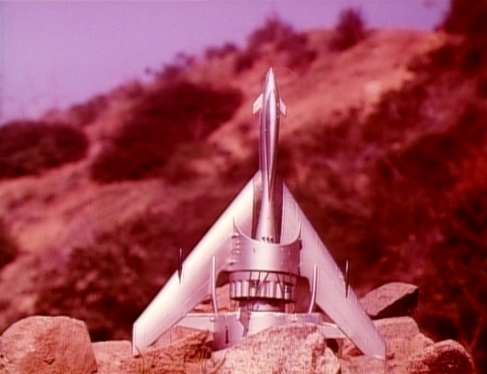 The Tagani footage has some additional weight with the inclusion of the beautiful Jennifer Bishop as the cave girl Lian, who meets up with the landing party. Willy is so smitten with her that he gives her a necklace. While the crew members find some crude elements by which to re-power the ship so they can take off, offscreen cave people besiege the landing party. A Tubata tribesperson stabs Bob, and then Steve plugs the evil doer before he collapses from the radiation. Oh yes— to make the film longer, Manning and Valerie also discuss the planet’s radiation, which was already explained to us. When the crew is ready to depart, Willy grudgingly leaves Lian, clasping her necklace, looking longingly offscreen at the model spaceship on the bloody rock.