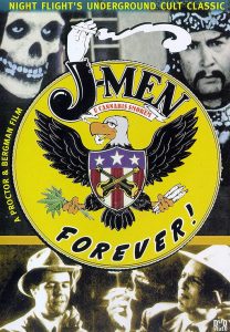 J-Men Forever! (USA, 1979) 73 min B&W DIR: Richard Patterson. PROD: Patrick Curtis. SCR: Philip Proctor, Peter Bergman. MUSIC: Richard H. Theiss. DOP: Bruce Logan. STARS: Philip Proctor, Peter Bergman, M.G. Kelly (voice). (Cult DVD)