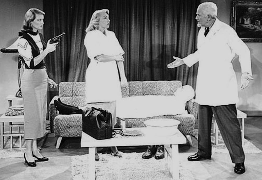 Co-scripted with Alex Gordon, produced and directed by Wood, and featuring a hodgepodge cast typical of Wood’s films (Lyle Talbot, Dolores Fuller, veteran actor Herbert Rawlinson), Jail Bait tells a story right out of a lurid dime-store paperback of the era. Don Gregor (Clancy Malone) is the restless, trouble-seeking son of a well-respected surgeon (Herbert Rawlinson), who has, to his father’s disappointment, thrown in with petty gangster Vic Brady (Timothy Farrell), looking for kicks. After being bailed out of jail by his sister (Wood regular and then-girlfriend Dolores Fuller) for carrying a gun (the “jail bait” of the title), young Gregor is coerced by Brady into holding up a theatre chain for their payroll money. The heist goes predictably wrong, and Brady and Gregor end up shooting a security guard and the theatre’s secretary. Police Inspector Johns (Lyle Talbot) and Lieutenant Lawrence (Steve Reeves of Hercules fame, in his first speaking role) are hot on the trail, and Gregor eventually confronts Brady in an effort to turn himself in, consumed by confusion and guilt. Brady mercilessly kills Gregor, and then demands that Dr. Gregor perform plastic surgery on his face to hide his identity, so that he might evade the law. The story climaxes with a twist, as Brady’s bandages are removed, and a final shootout with the police ends the film on a grim note.