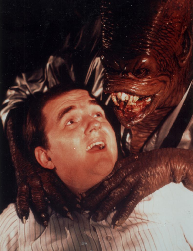 Amusingly, this sci-fi invasion film is a reboot of Don Dohler’s own The Alien Factor, as it features many of the same actors, playing the same characters! One wishes instead there were references made to the earlier picture, for instance if the sheriff said: “Here we go again.” Rather, these people aren’t aware of their own fictions, and battle a hostile alien as if for the first time. Anne Frith and George Stover return as, respectively, Dr. Sherman and Steven Price. This time, Sheriff Cinder (Tom Griffith) has curly hair to go with his porn moustache- all the better as he is paired with the spunky patrolwoman Lisa Kent (Karin Kardian) to help save the world. Richard Dyszel returns as the hapless Mayor Wicker, overacting as ever, who whines incessantly that the sheriff’s declaration of an emergency situation is screwing up his meet and greet with the governor.
