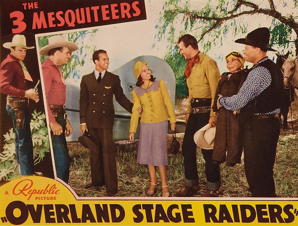 Overland Stage Raiders (USA, 1938) 54 min B&W DIR: George Sherman. PROD: William Berke. SCR: Luci Ward. DOP: William Nobles. CAST: John Wayne, Ray Corrigan, Max Terhune, Louise Brooks, Anthony Marsh, John Archer, Arch Hall Sr. (Republic Pictures)